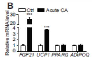 Ù Ucp1与Fgf21的mRNA水平在肉桂醛的处理后有显著上升(图片来源:《Metabolism - Clinical and Experimental》)